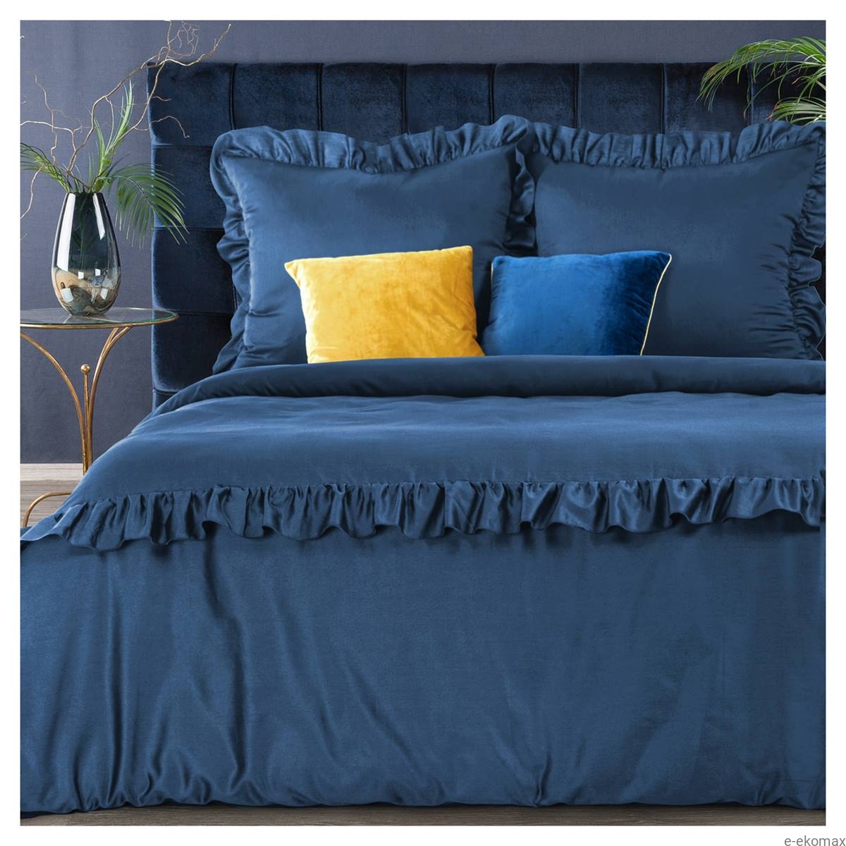 Premium pościel granatowa makosatyna 220x200 z falbanką