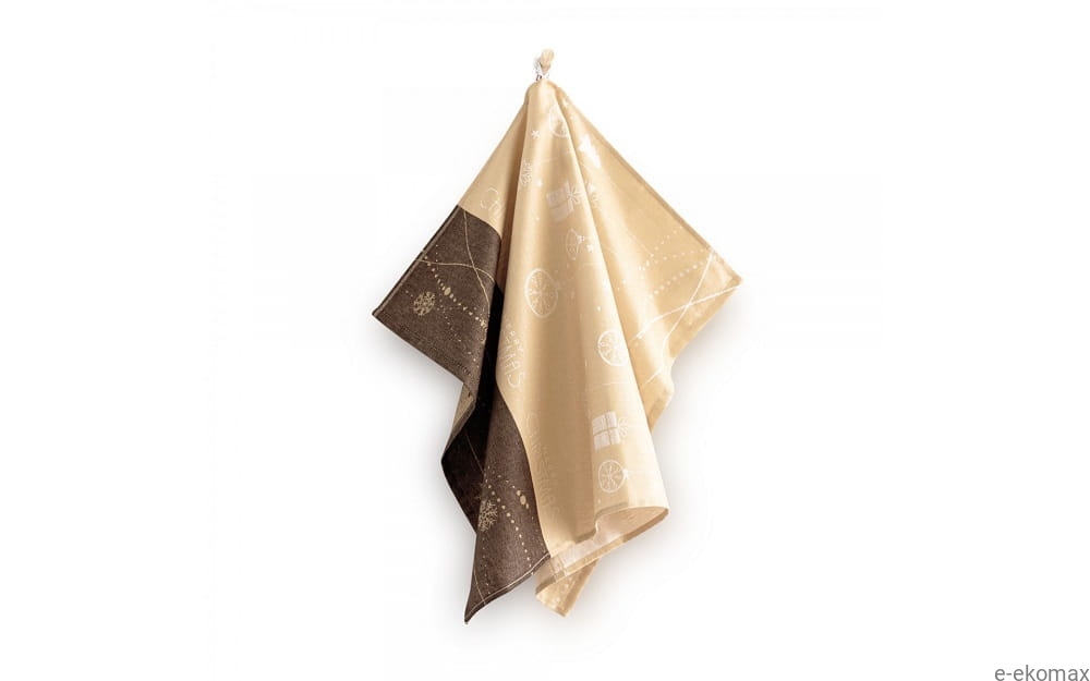 Ścierka świąteczna kuchenna beżowo brązowa 50x70 Merry Time