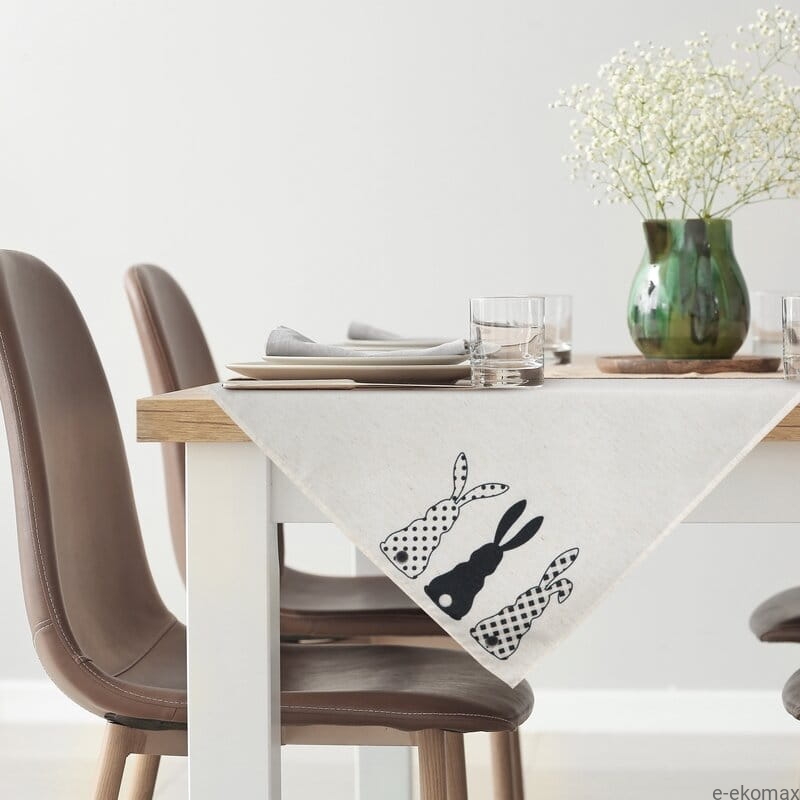 Wielkanoc to czas radości, rodzinnych spotkań i pięknych dekoracji, które podkreślają wyjątkowy charakter tych świąt. Jeśli chcesz nadać swojemu wnętrzu elegancki, a zarazem przytulny wygląd, serweta z motywem wielkanocnych zajączków będzie doskonałym wyborem. Jej wymiary 85x85 sprawiają, że świetnie sprawdzi się zarówno jako centralna dekoracja stołu, jak i dodatek na mniejsze stoliki kawowe czy komody. Wykonana z wysokiej jakości tkaniny w naturalnym, kremowym odcieniu, została ozdobiona uroczymi czarnymi sylwetkami zajączków w różnych wzorach, które dodają jej unikalnego, skandynawskiego charakteru. Połączenie klasycznej kolorystyki z subtelnym motywem sprawia, że serweta pasuje do różnych aranżacji – od nowoczesnych wnętrz po te bardziej tradycyjne.