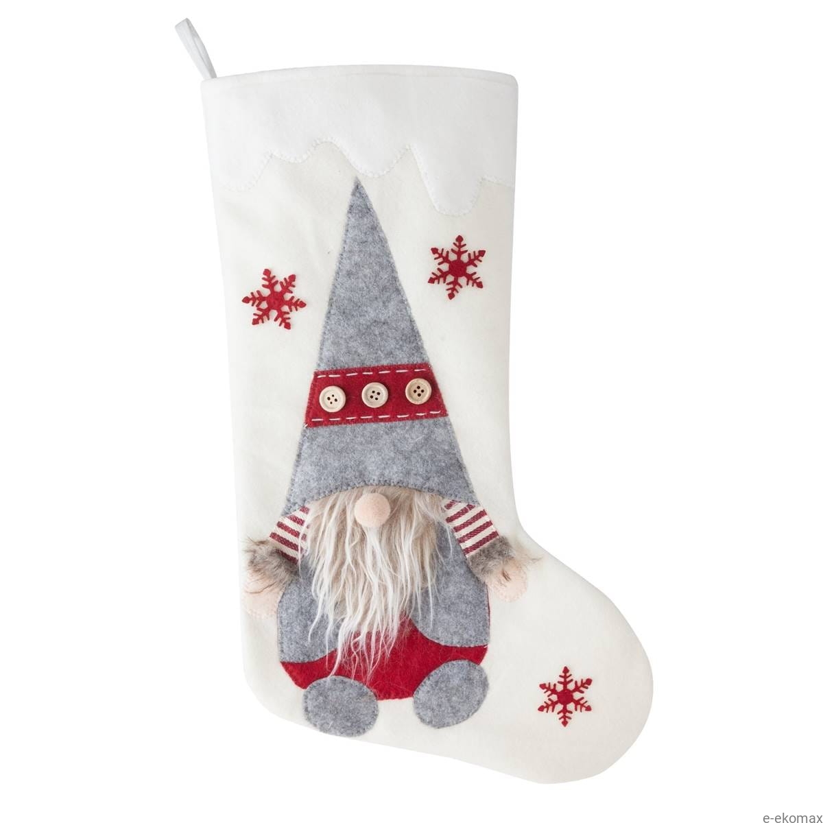 Skarpeta świąteczna biała stalowy Gnom
