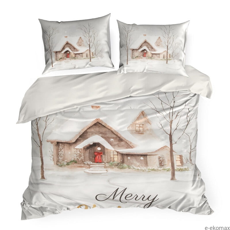 Świąteczna pościel z bawełny satynowej 160x200 Zimowa Chatka