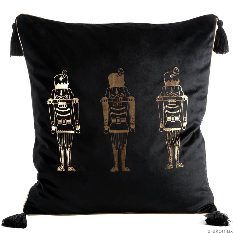 Świąteczna poszewka Czarna 45x45 Złote Dziadki do Orzechów