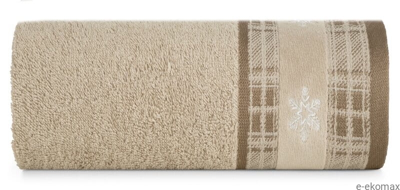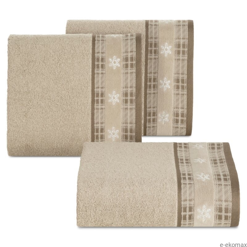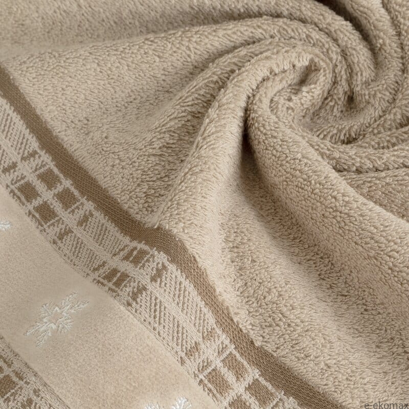 Świąteczny ręcznik bawełniany 50x90 cm – beżowy z haftem śnieżynek