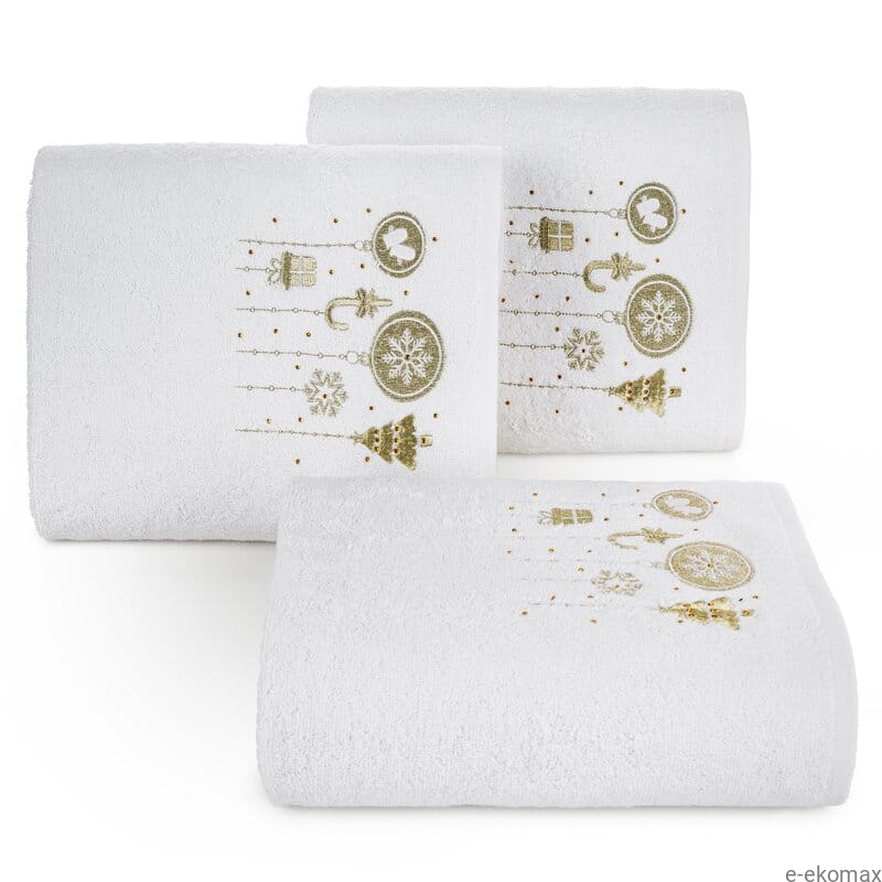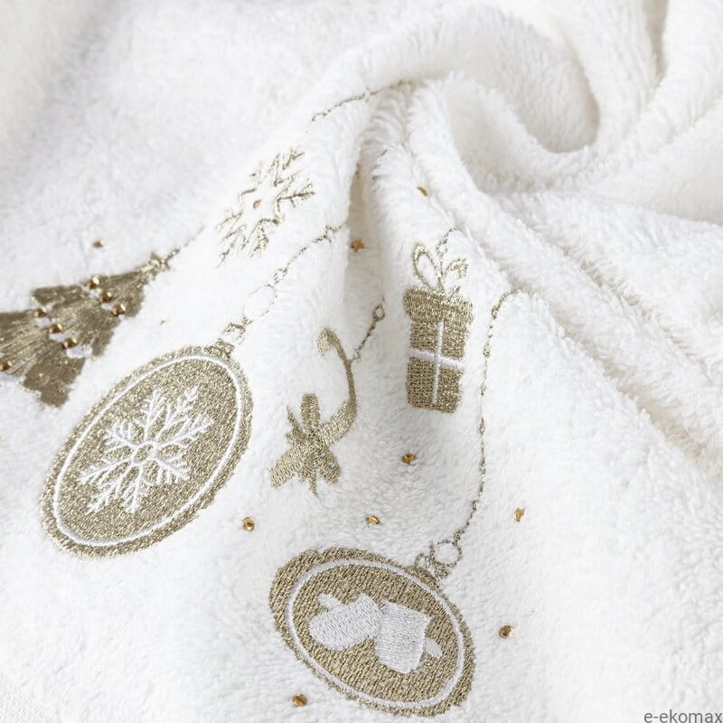 Świąteczny ręcznik bawełniany 50x90 cm – biały ze złotym haftem