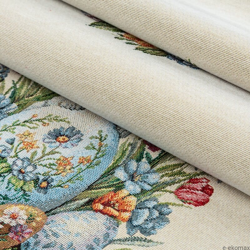 Wykonany z wysokiej jakości tkaniny gobelinowej o gęstym splocie, bieżnik charakteryzuje się trwałością, odpornością na odkształcenia oraz eleganckim wyglądem. Doskonale układa się na stole, zachowując swój kształt i estetykę nawet przy intensywnym użytkowaniu.