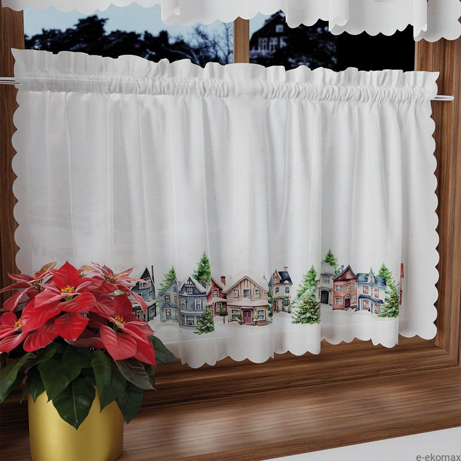 Zaprojektowana i wydrukowana w Polsce, zazdrostka świąteczna wyróżnia się eleganckim wykończeniem chmurką ultradźwiękową, co nadaje jej delikatności i finezji. Ta zasłonka doskonale sprawdzi się jako element świątecznej dekoracji, łącząc estetykę i funkcjonalność w jednym. Wprowadź do swojego domu magię świąt z tym uroczym, zimowym miasteczkiem na Twoich oknach.